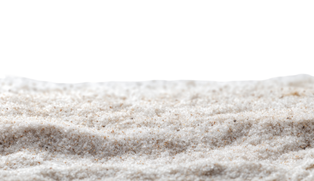 Close-up, low-angle of pristine light beige fine sand meticulously sculpted into gentle mounds, soft undulations and delicate grain texture on transparent studio background, concept of zen