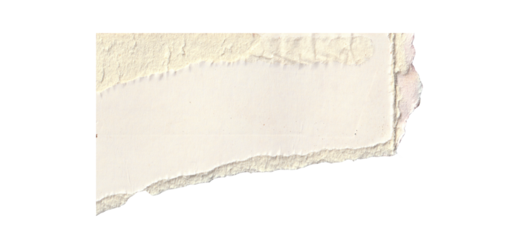 Torn paper edge isolated on transparent background, representing a separation or a break in continuity, with a rough, uneven texture that adds a tactile element to the visual