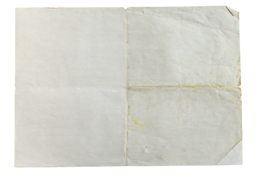 Aged, unfolded paper with burnt edges and detailed discoloration patterns, folded creases