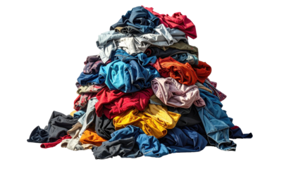 A stack of folded colorful t-shirts, arranged next to a single unfolded blue one