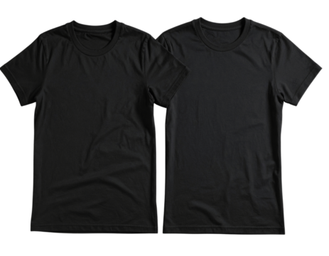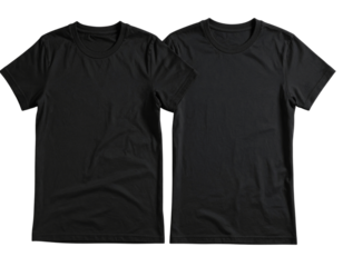Folded and Unfolded Black T-Shirt Set, Realistic Flat Lay Presentation on transparent background PNG