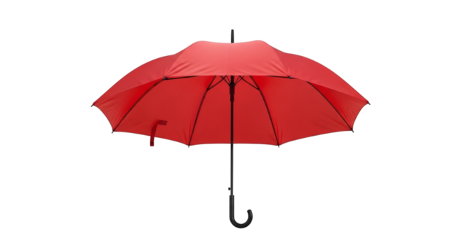 Striking scarlet umbrella elegantly unfolded against black backdrop, creating vibrant contrast emphasizing protection and style.