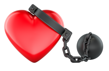 Heart with ball and chain shackle. Symbol of restriction or emotional bondage. 3D rendering