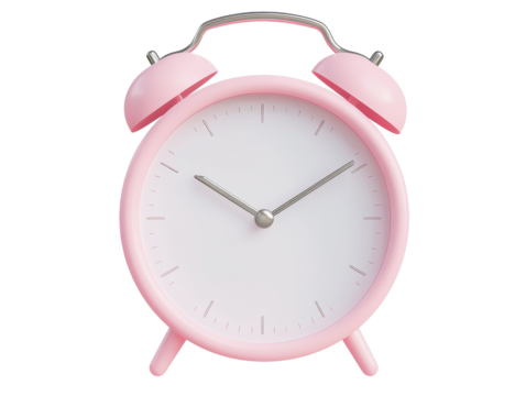 Purple classic alarm clock showing 3 o'clock on transparent background