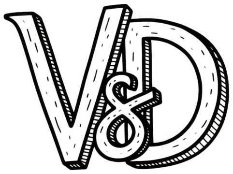 Valentine Vintage style letters V and D with ampersand in between on transparent background