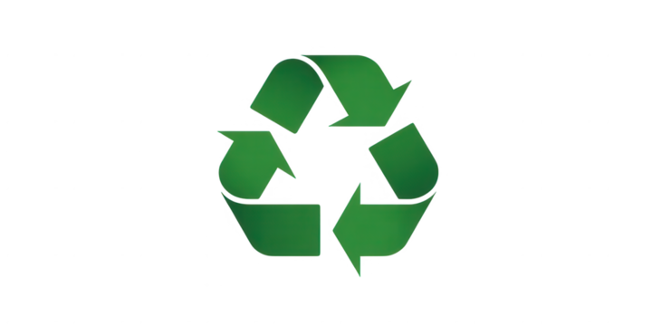Bright green recycling bin with universal recycling symbol sticker, isolated on transparent background for easy use in design projects