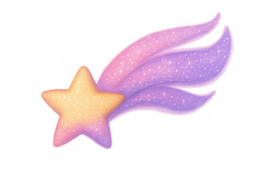 Shooting star with glitter sparkling trail, falling through the sky, bringing magic and wishes, transparent background
