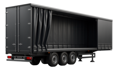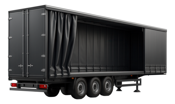 Curtain-sided trailer with rear doors and side access curtains.