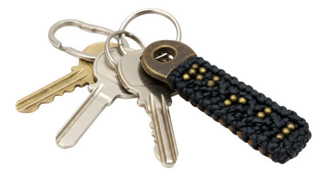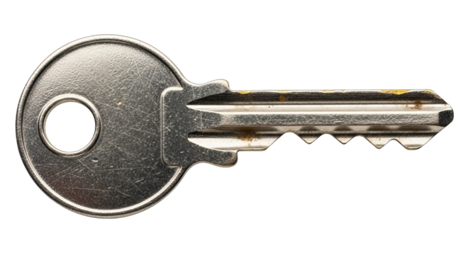 Shiny metal key isolated on transparent background, ready to unlock doors