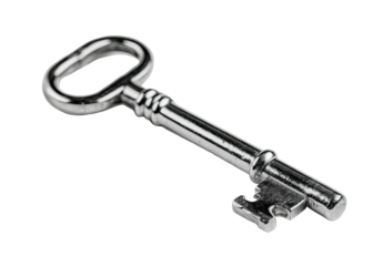 A polished, metallic key isolated against a solid black background, representing access