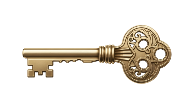 Ornate Gold Key Antique Style on Transparent Background