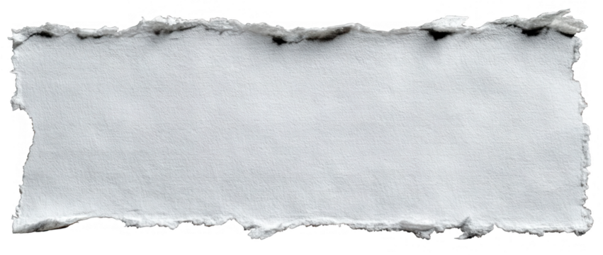 A rectangular piece of torn white paper