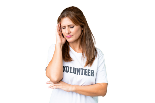 A woman in office clothes are facial expression anxiety and stress, hands touching head, Transparent background. PNG.