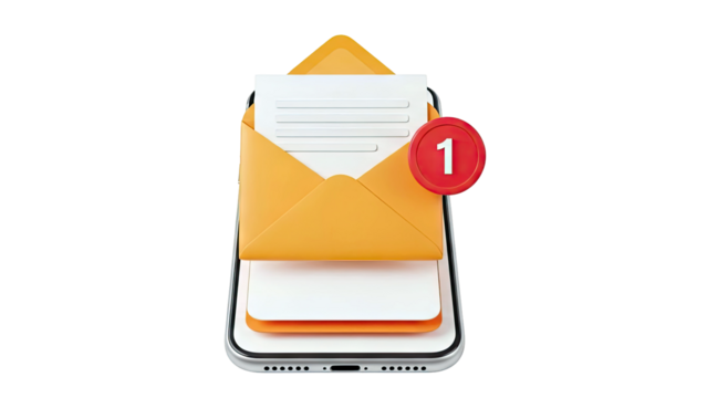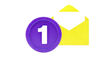 A golden mail envelope displays a red notification badge with '1', indicating an unread message. Simple, elegant, and signifying new communication. background removed
