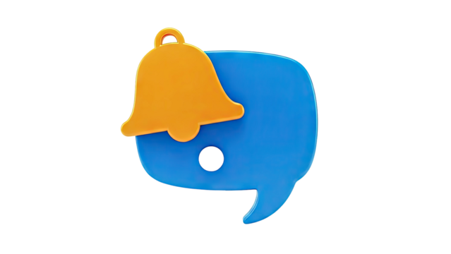 Blue notification bell icon with three unread alerts isolated on transparent background