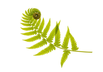 Isolated Unfurling Fern Frond Fresh Green Spring Growth, Fern Leaf Isolated, Botanical
