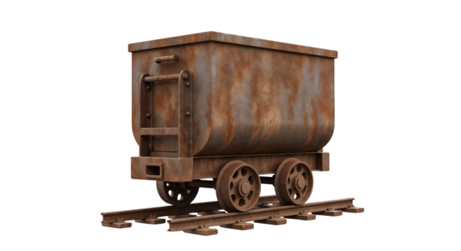 Rusty mining cart on old tracks in industrial style