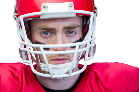 Cheerful man in uniform fully transparent kneeling posture isolated