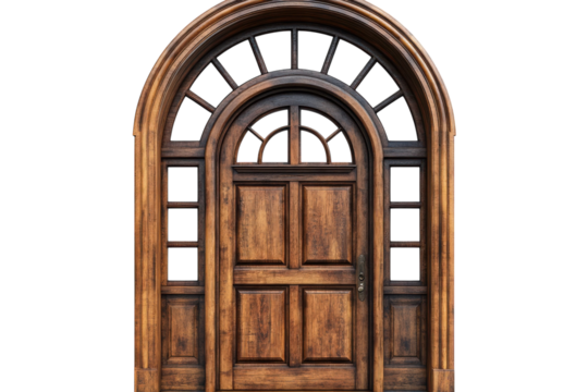 An enchanting arched wooden door beckons entry with timeless elegance a portal to untold on transparent background