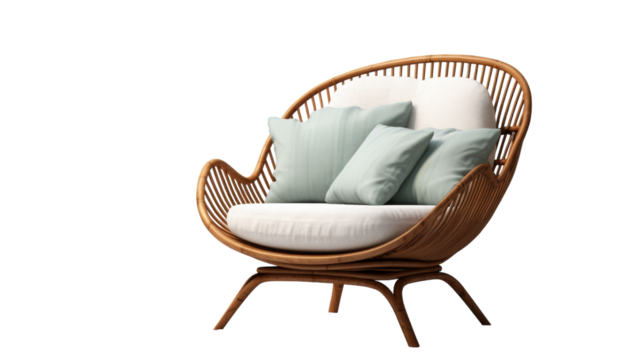 A wicker chair adorned with colorful pillows, offering a cozy spot to relax and unwind