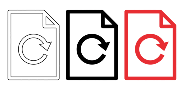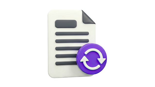 Outline icon representing document processing, file refresh, or data synchronization with a circular arrow and progress bar isolated on transparent background