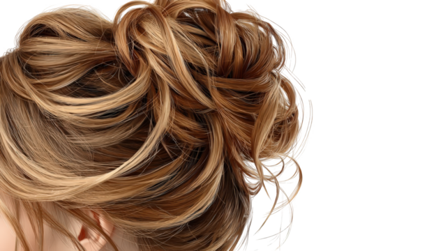 Close-up of styled blonde hair in a messy bun