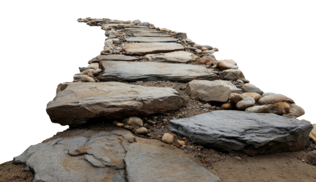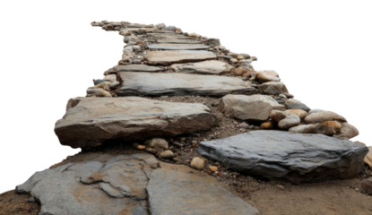 A winding path, constructed of large, flat stones, leads upward. The background is isolated