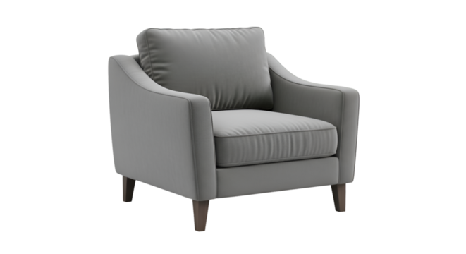 Light grey fabric armchair with elegant metal legs modern comfortable contemporary seating isolated on transparent background