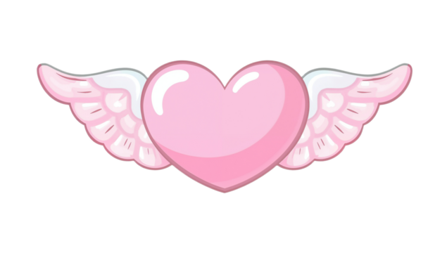 Stylized glossy pink heart with feathered wings, a vibrant cartoon illustration symbolizing love and romance. This charming graphic evokes sweet affection for uplifting art