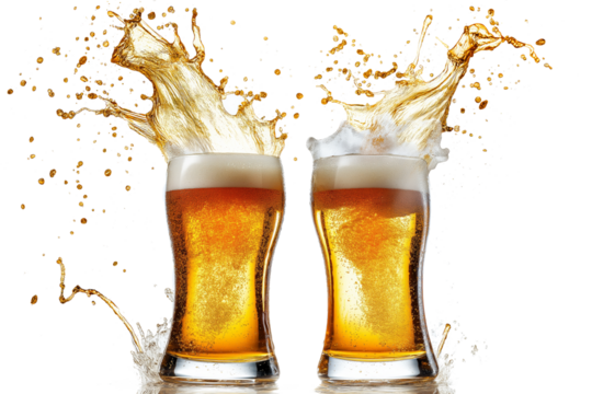 beer-splashing in a PNG, vertiacal format, celebrating-themed, isolated, and transparent photorealistic illustration.  Generative ai