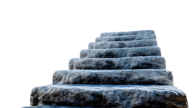 Stone steps leading upward against a backdrop of blue sky and clouds offering inspiration