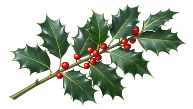 Top Adobe Stock Holly Plant Image - Realistic Digital Illustration of Holly Branch with Glossy Dark Green Leaves and Red Berries, Full HD, 4K Stock Photo, PNG Transparent Background, Download