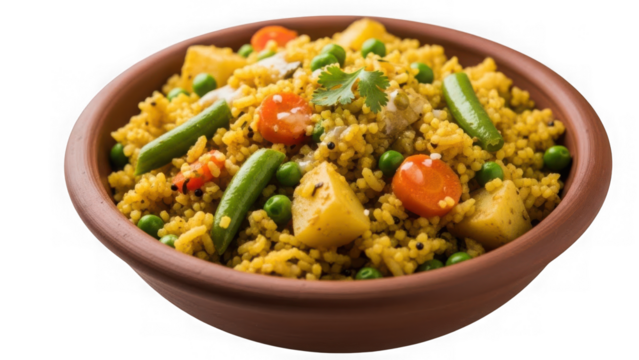 Savory millet upma with mixed vegetables isolated on transparent background