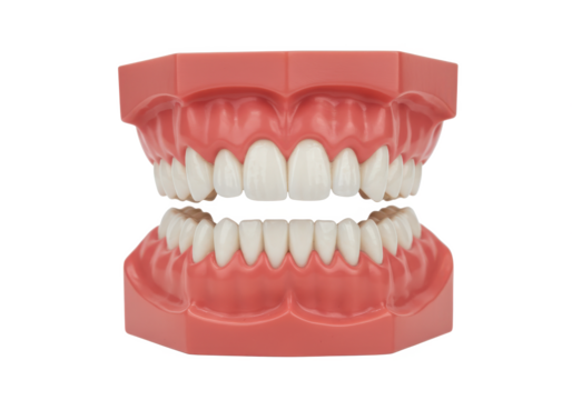 Dental model showing upper and lower teeth on a white background for educational purposes in a dental office setting