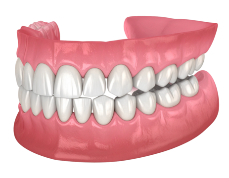 Realistic pair of full dentures showing upper and lower sets of teeth