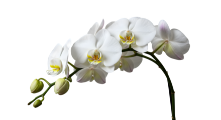 Delicate White Orchid on Black Displays Elegance. Perfect for upscale branding, presentations, or floral art.