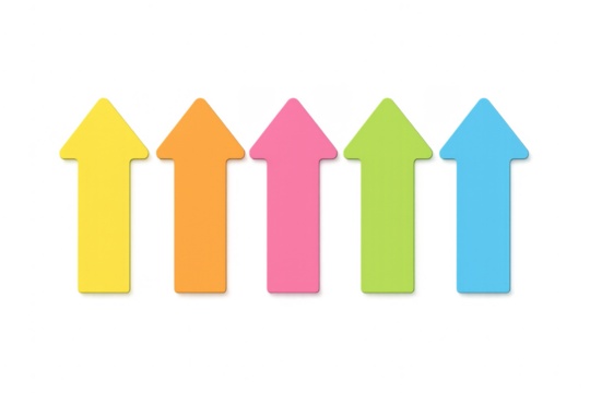 Colorful upward arrows symbolizing growth on transparent background