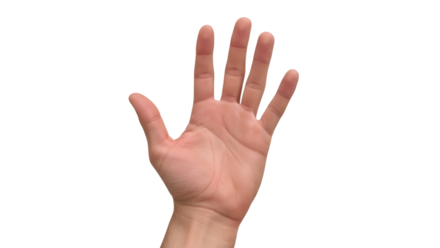 Isolated human hand showing five fingers extended upward in gesture of stopping or high-five