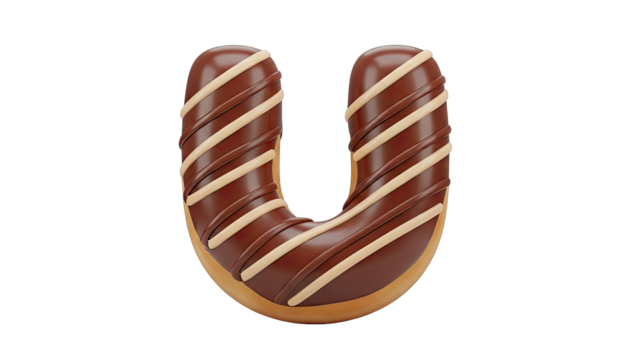 Chocolate Donut Shaped Letter U with Cream Swirls