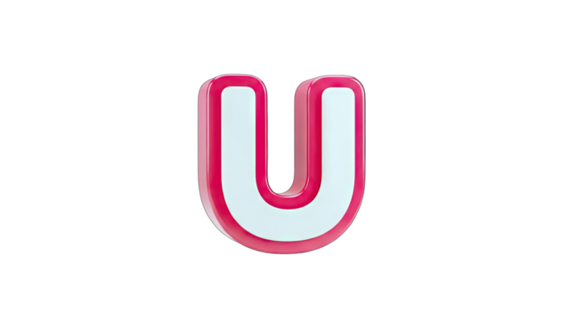 3D Pink Letter U with Black Outline on White Background