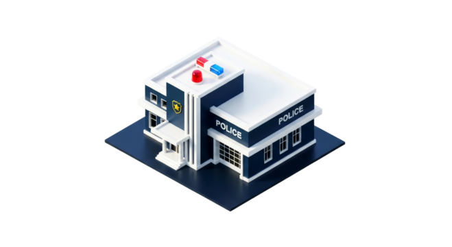 lowpoly police station 3d model city justice asset, isolated on transparent background
