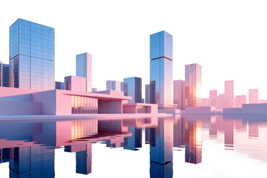 Modern Urban Skyline with Reflection in Water
