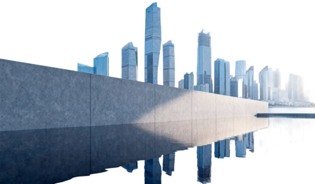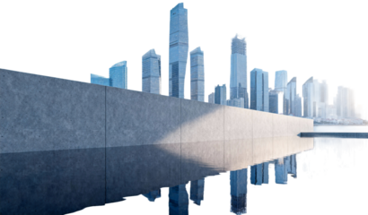 Vibrant city skyline highlighting shiny skyscrapers under a clear sky with a transparent backdrop providing a modern urban aesthetic