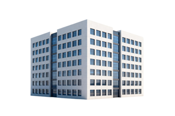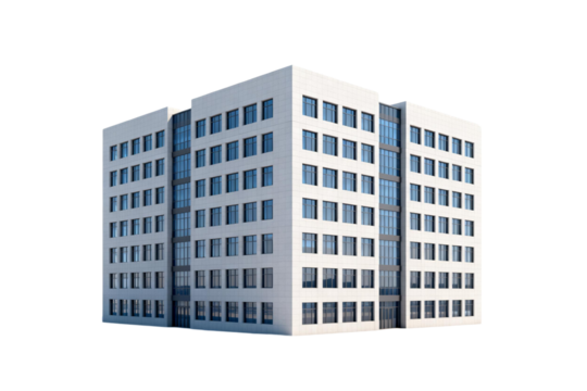 Modern glass skyscraper PNG isolated on transparent background, contemporary architecture with clean lines and geometric design for urban development