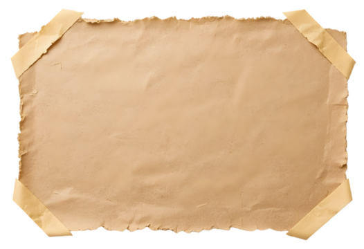 Yellow torn paper note with jagged edge taped, blank space for text, reminder message for communication, transparent background