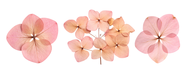 Dry pink hydrangea flowers isolated on a transparent background; PNG
