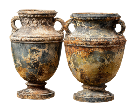 Antique decorative urns museum exhibit artifacts isolated on transparent background