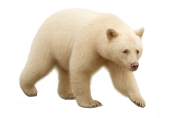 Kermode spirit bear walking, rare white fur, ursus americanus kermodei, isolated animal on transparent background