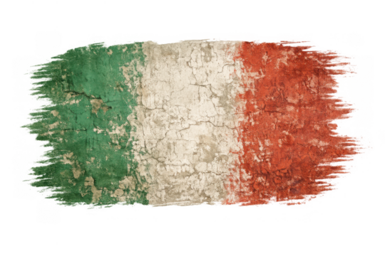 Italian flag painted brush stroke with grunge texture, depicting national symbol and patriotic strength on transparent background