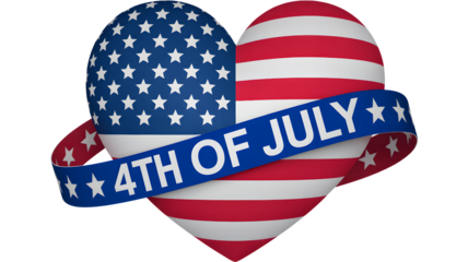 Patriotic heart with american flag and 4th of july banner on a black background isolated on transparent background